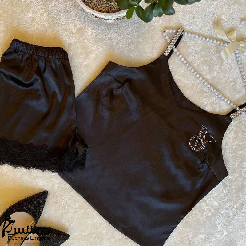 ست تاپ شورتک ساتن نگین دار Ema اما کد 2880